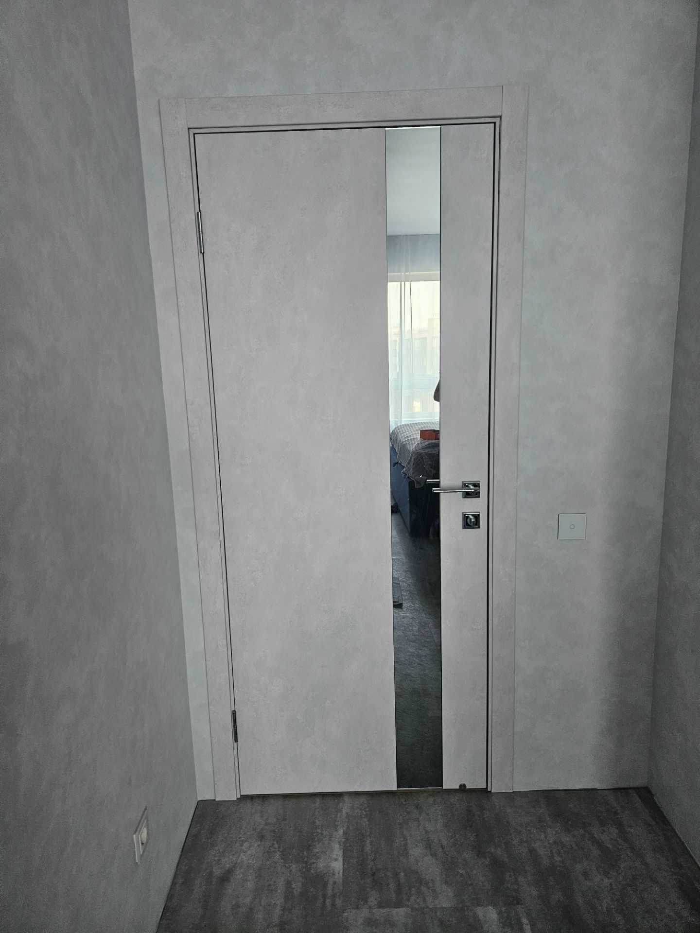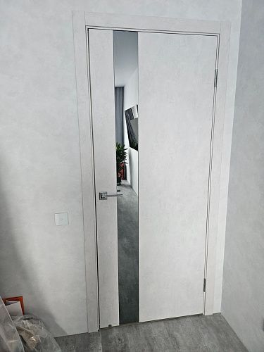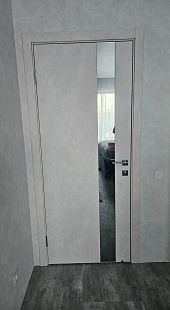 Дверь ПО EXZ 10E Бетон лайт зеркало графитовое из Экошпона COVERFLEX (Двери Нева) в с установкой и доставкой