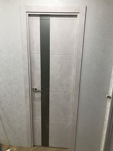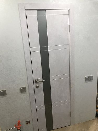 Дверь ПО Evolution 1 Бетон лайт стекло зеркало-графит из Экошпона COVERFLEX (Двери Нева) в с установкой и доставкой