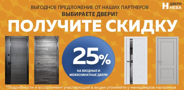 Получите скидку 25% на входные и межкомнатные двери